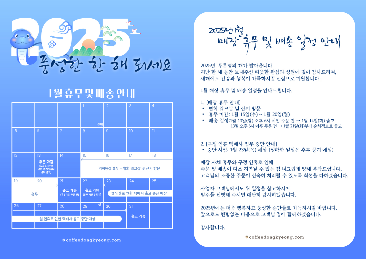 2025_1월 커피동경 휴무 및 설 배송 안내