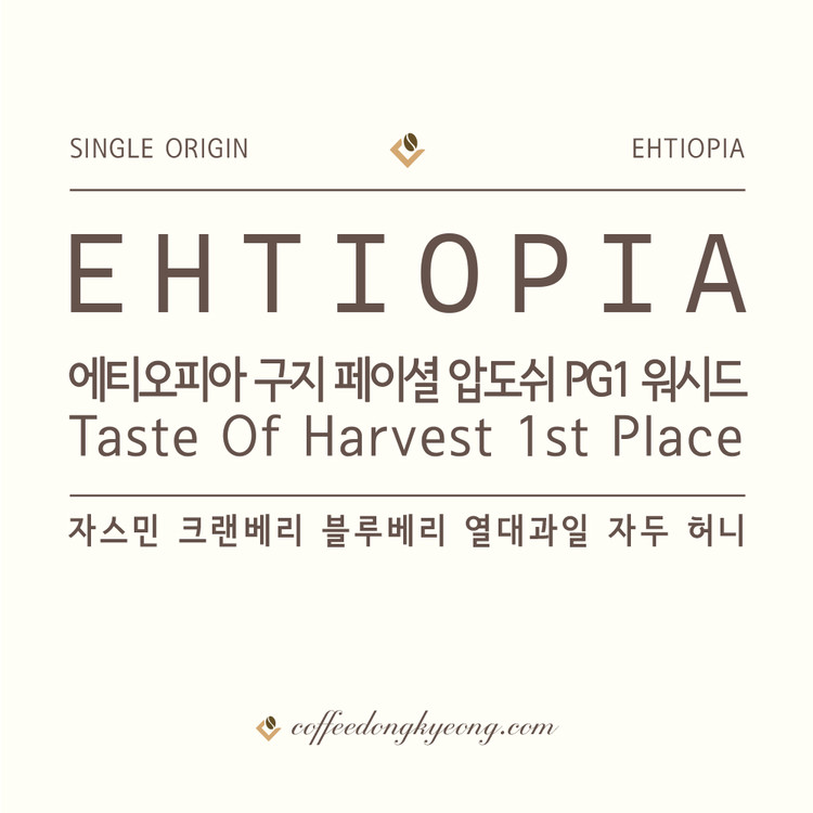 [커피동경 싱글오리진 원두] 에티오피아 구지 페이셜 압도쉬 PG1 워시드 TOH 1st Place 100g